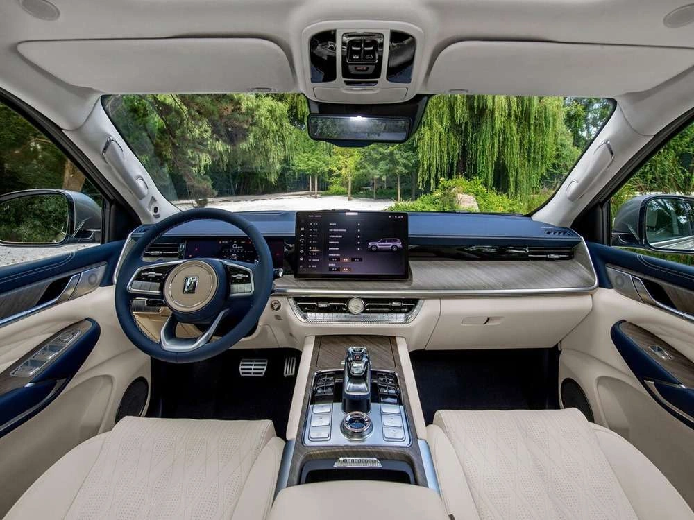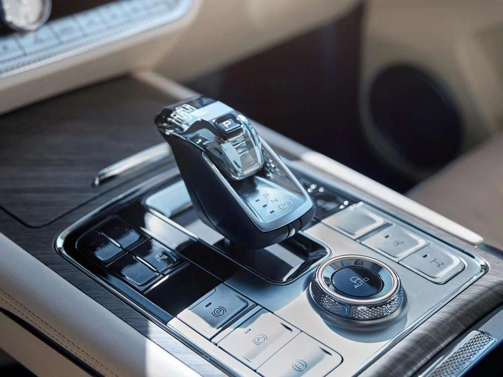 | Центральный подлокотник сидений заднего ряда с подстаканниками, отсеком для хранения и сенсорным экраном управления функциями автомобиля |